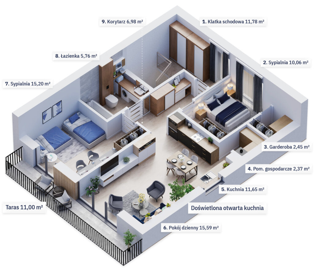| 35/H2 | 3 | 1 | 3 | 82.41m2 | 11.00m2 | Taras | Sprzedane | Mieszkanie nr:Nr:35/H2 Typ: 1809 Piętro: 1 Pokoje: 3 Powierzchnia:Pow: 82.41m2 Działka:11.00m2 Sprzedane | |||