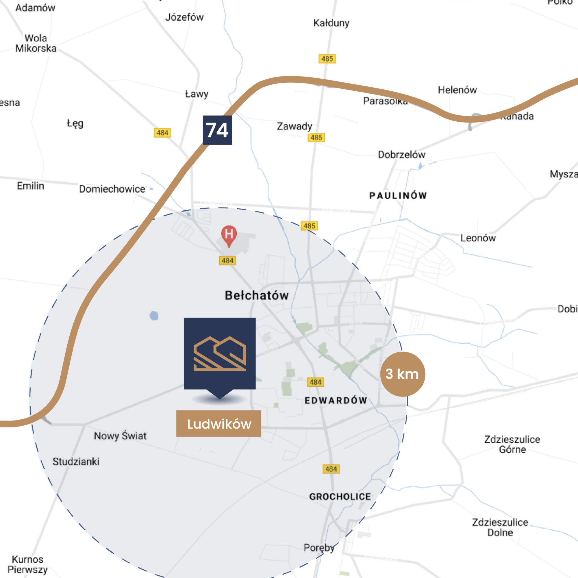 Polana Śniadeckich znajduje się na Ludwikowie w bardzo dobrze skomunikowanej okolicy tuż przy ul. Braci Śniadeckich w Bełchatowie. Wykorzystując samochód lub transport publiczny, można dotrzeć do centrum w ok. 5 minut.